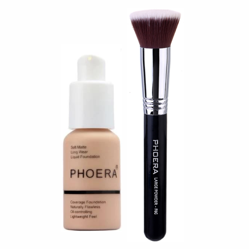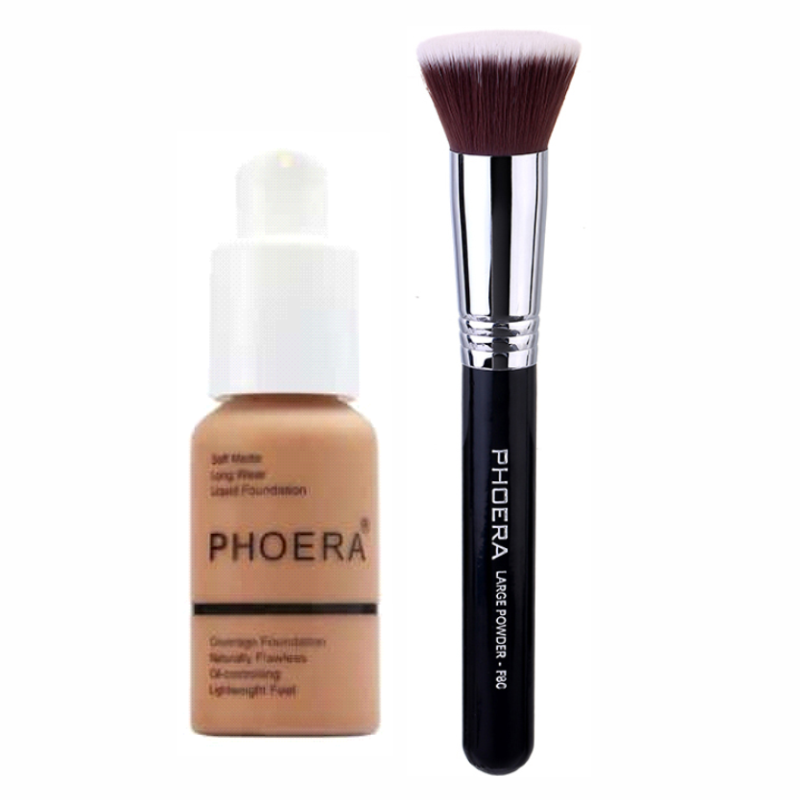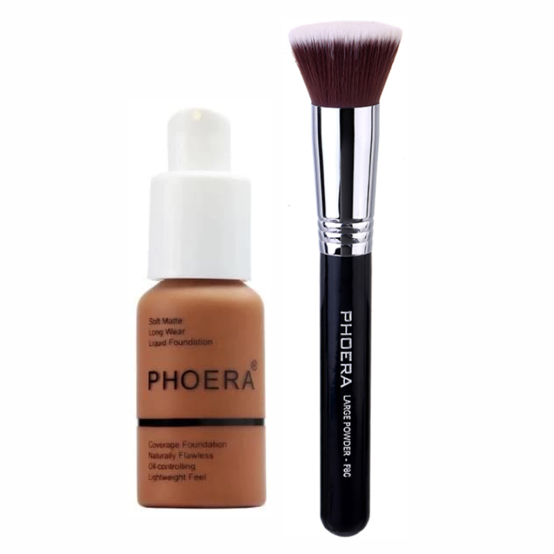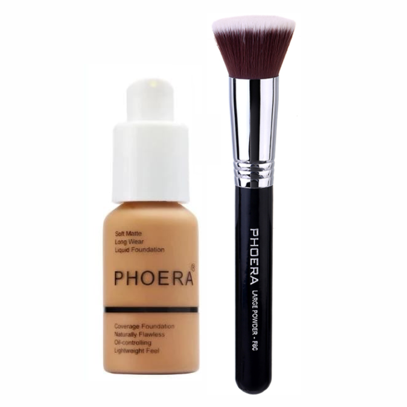 Phoera Liquid Foundation & Flat Kabuki Foundation Brush Combo