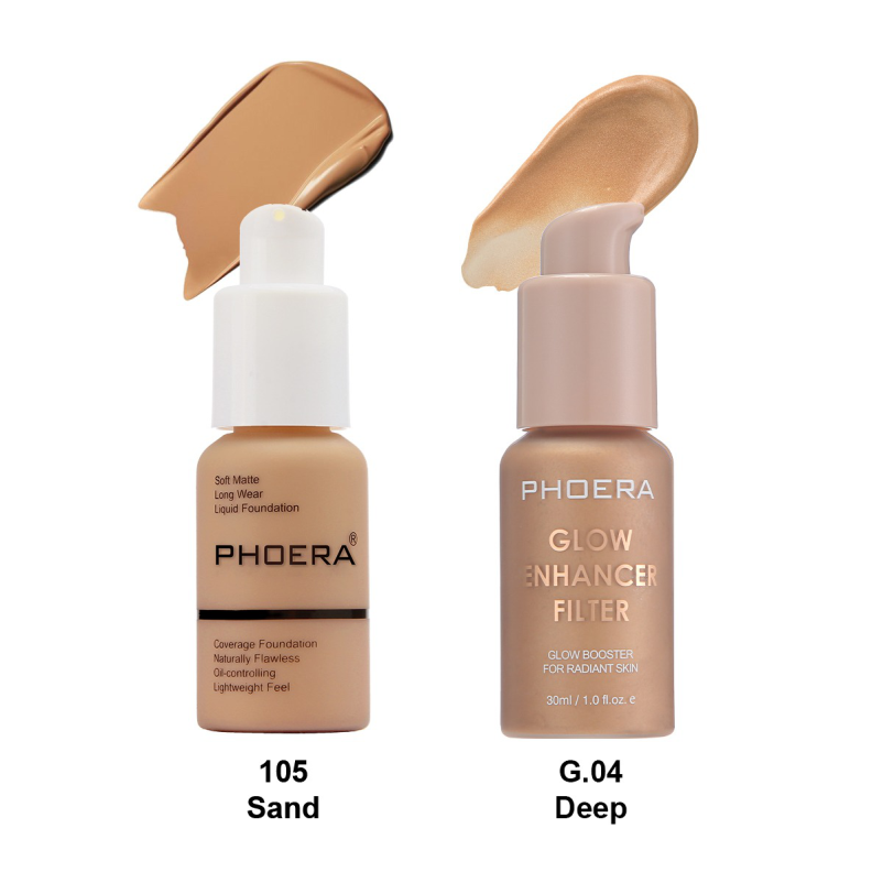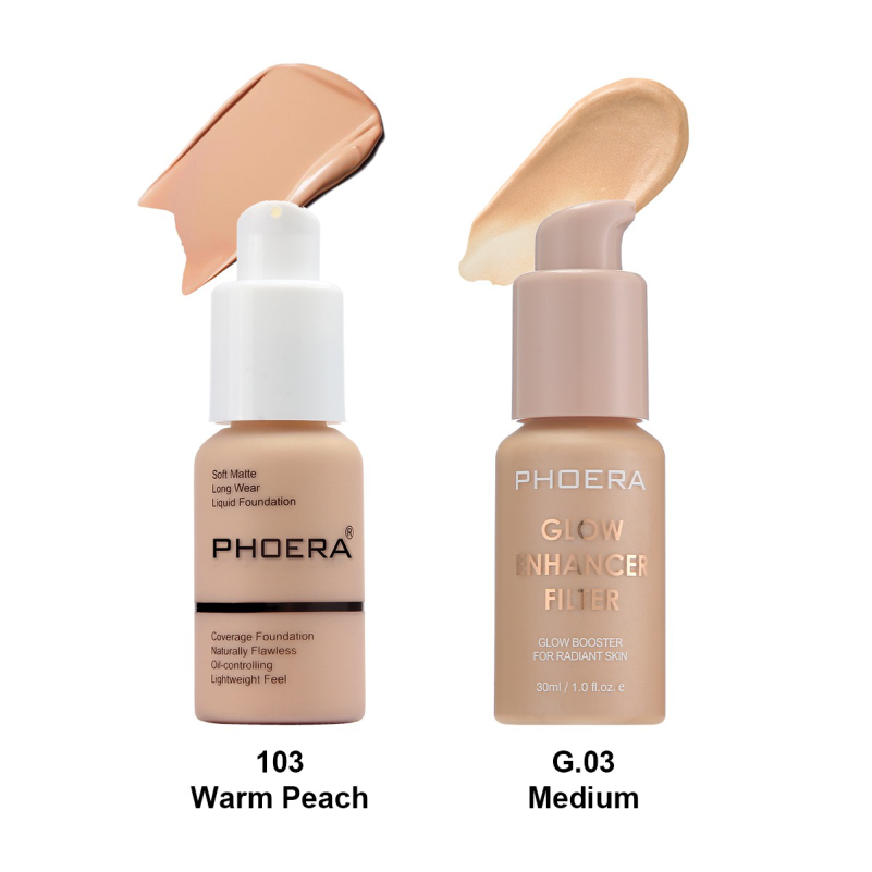 PHOERA Full Coverage Liquid Foundation and Natural Glow Enhancer Filter Combo