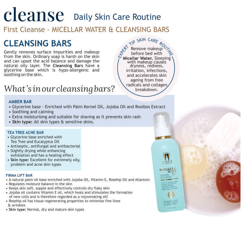 Willa Krause - Amber Bar is A hypo-allergenic soothing face wash that gently removes impurities and makeup from the skin. Enriched with Jojoba Oil and Rooibos Extract.