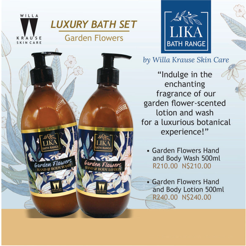 Willa Krause - Lika Bath Range - Luxury Bath Set - Hand & Body Wash and Lotion Combo Set " Indulge in the enchanting fragrance of our garden flower-scented lotion and wash for a luxurious botanical experience!"